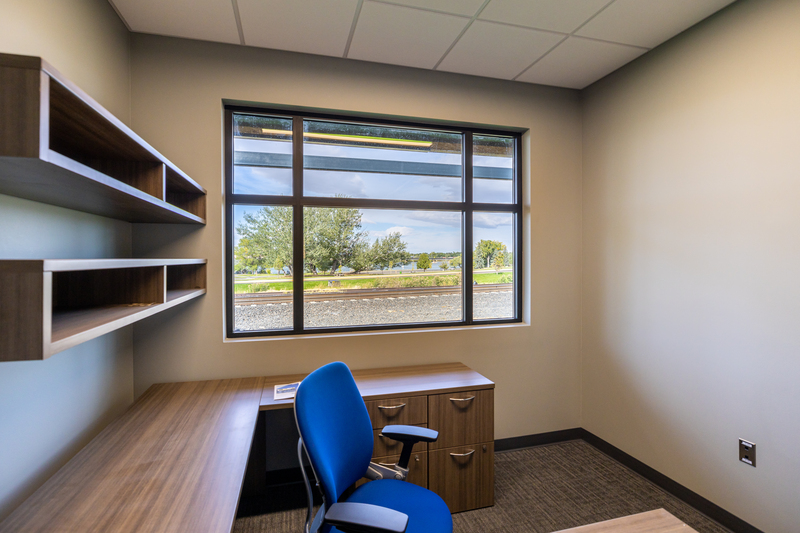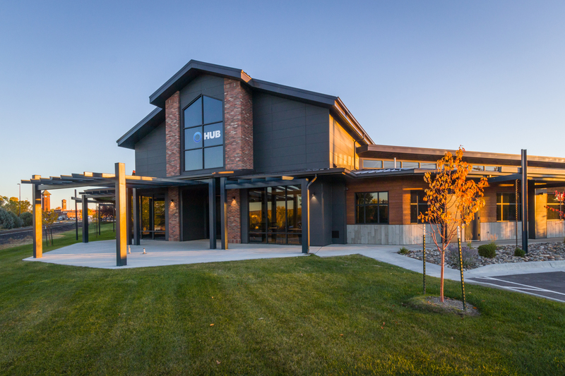 The HUB international – Great Falls branch is a brand-new insurance office building. Located just off the Missouri River this 10,200 sqft building provides stunning views. The office layout provides two wings with a central core. Each wings serves houses the specific departments that require daily interaction with each other. Each wing has the offices located at the perimeter providing great view. The interior is open to the structure above and bring in light through the clerestory and contains depart work spaces, personal conference rooms, and printer/supply areas. The Center Core serves as the public show space. The core was designed to completely open up to turn into one large entertaining space for clients that also be partitioned out into the reception, waiting area, large conference room, and break room. One obstacle the design team had to overcome was the updated total budget in the middle of construction. Working with the contractor and owner we were able to pivot design and meet the project budget. The project team was able to reduce the project cost by around $350,000 bringing the final construction budget to $3,600,000.